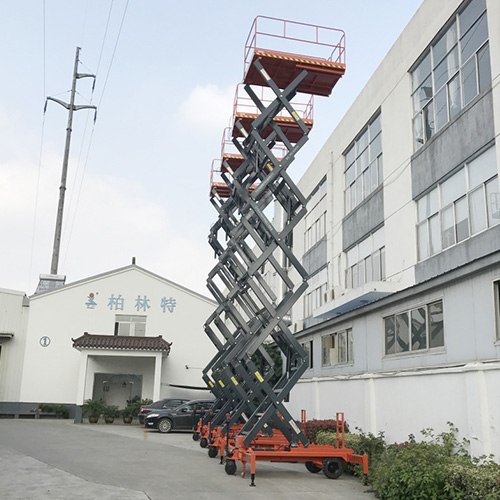 移動剪叉式升降機是用途廣泛的高空作業專用設備。可同時站3-4個人的工作平臺,500-1000kg的超大承載能力,使高空作業范圍更大,節約了大量無效勞動力。特別適合于工廠車間、體育場館等較大范圍的高空作業。